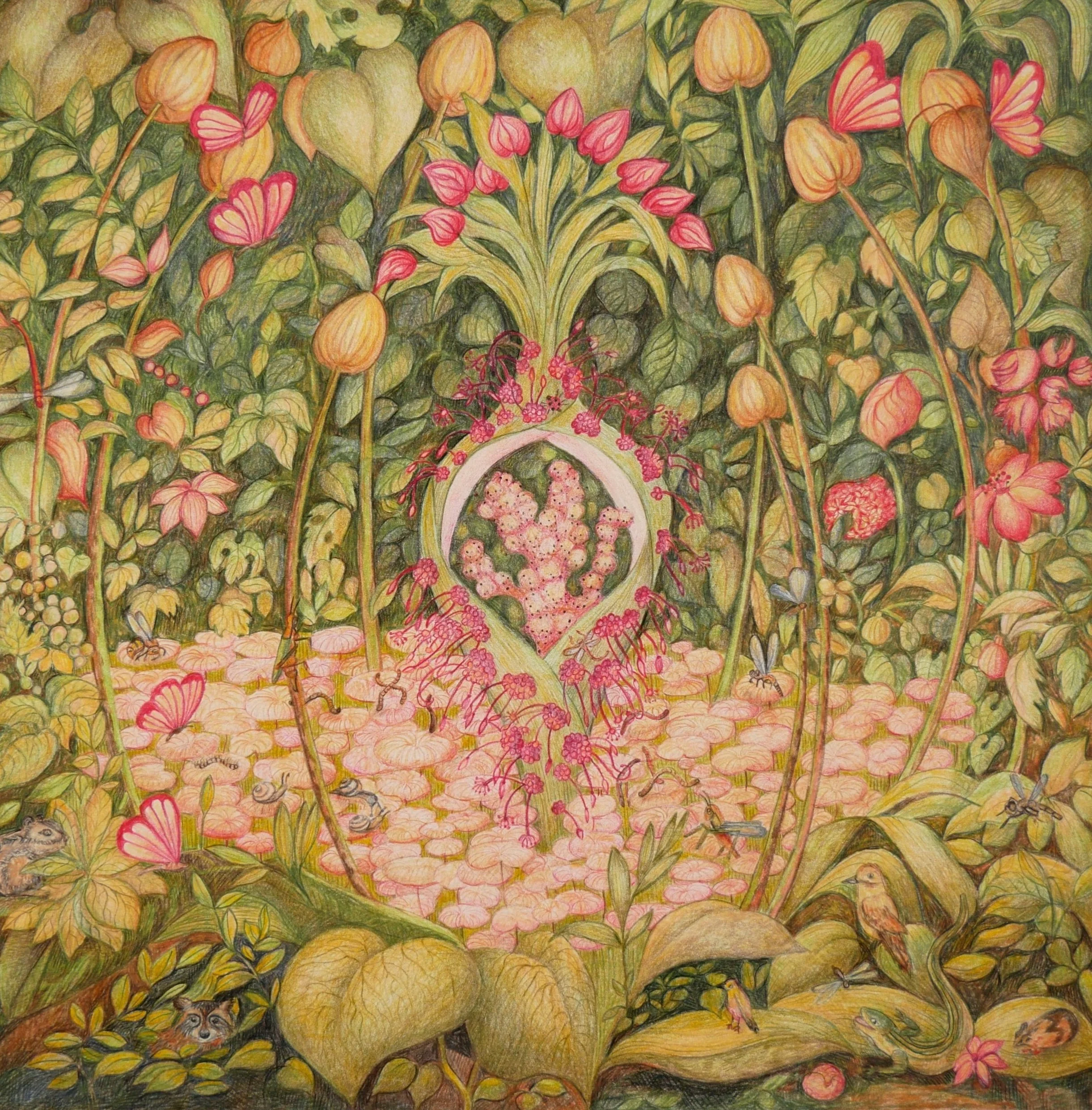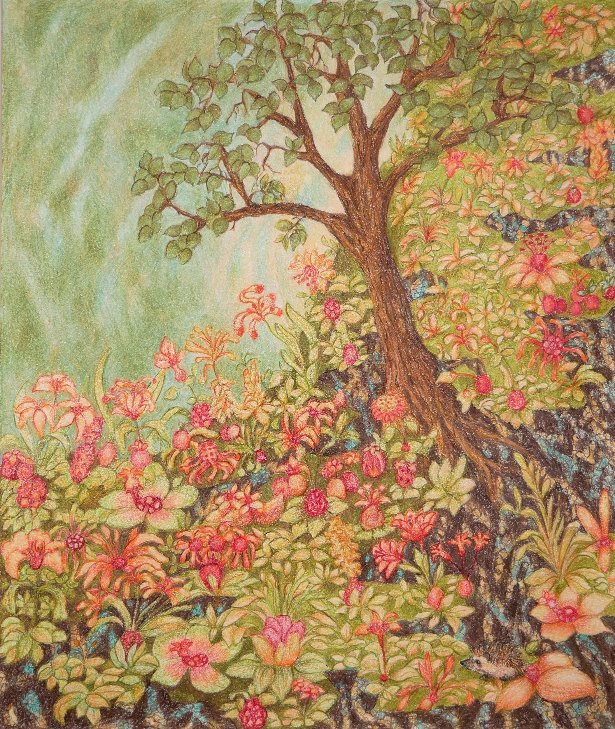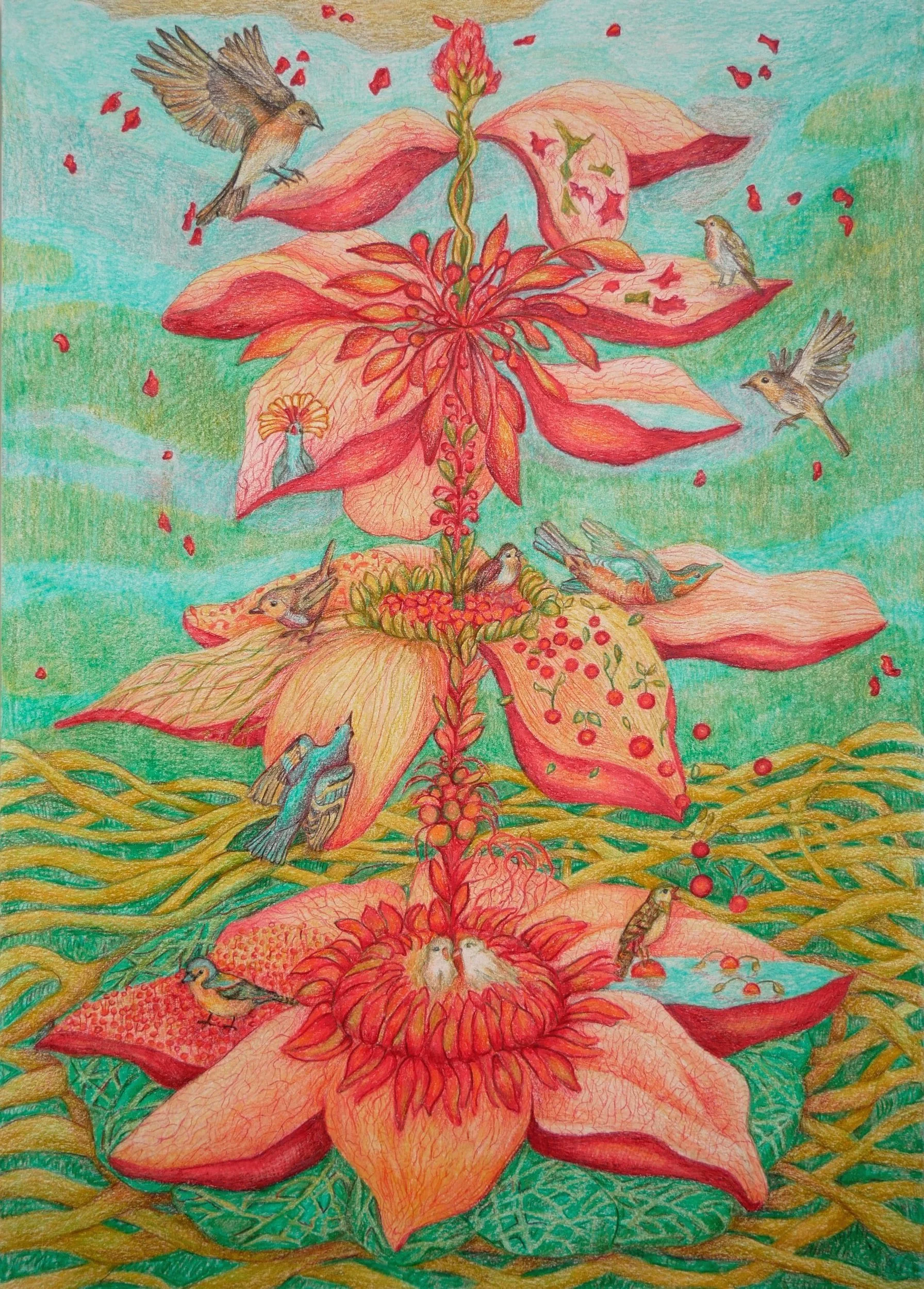 Kwietny lampion, kredka na papierze 29x29 cm