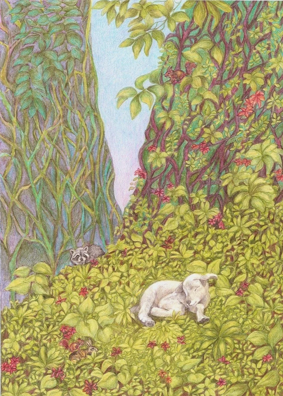 Czujność, kredka na papierze, 30x42 cm